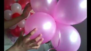 3. 花朵气球:这个形状优雅大方,适合装饰房间。只需将气球吹成球形,然后按照视频教程折叠出花瓣的形状。